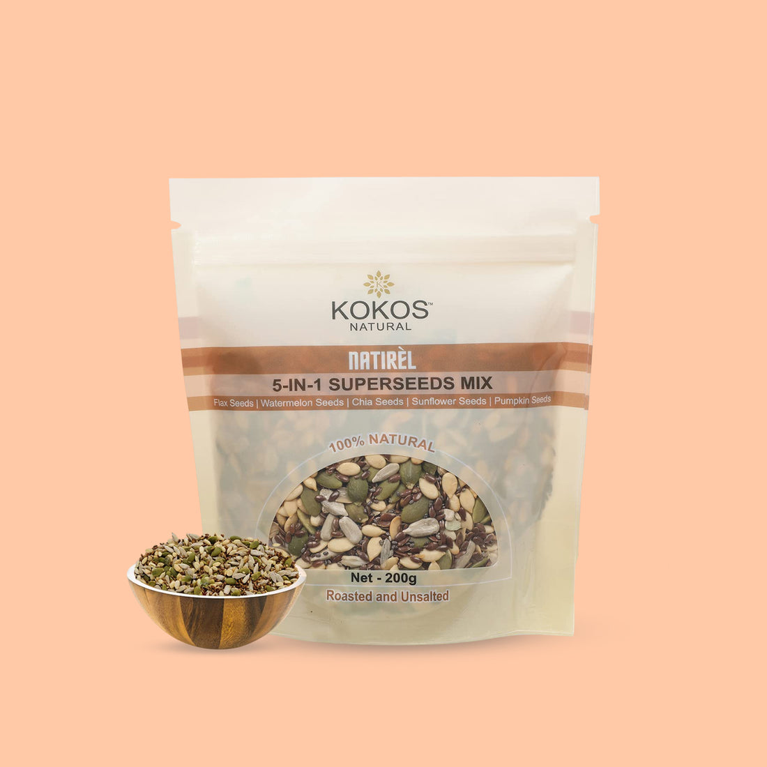 Kokos Natural 5 in 1 Super Seeds Mix - Contain Flax, Watermelon, Chia, Sunflower &...