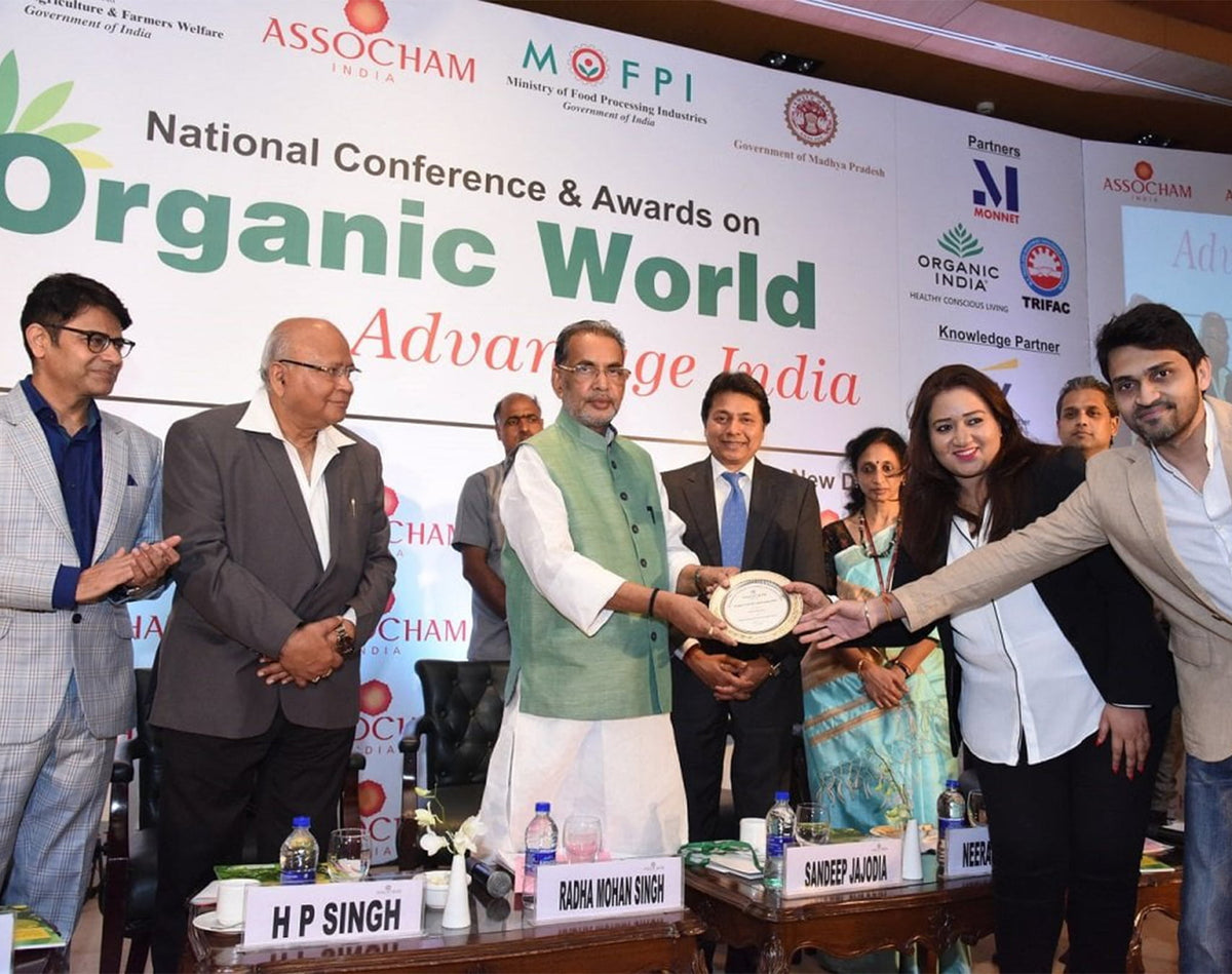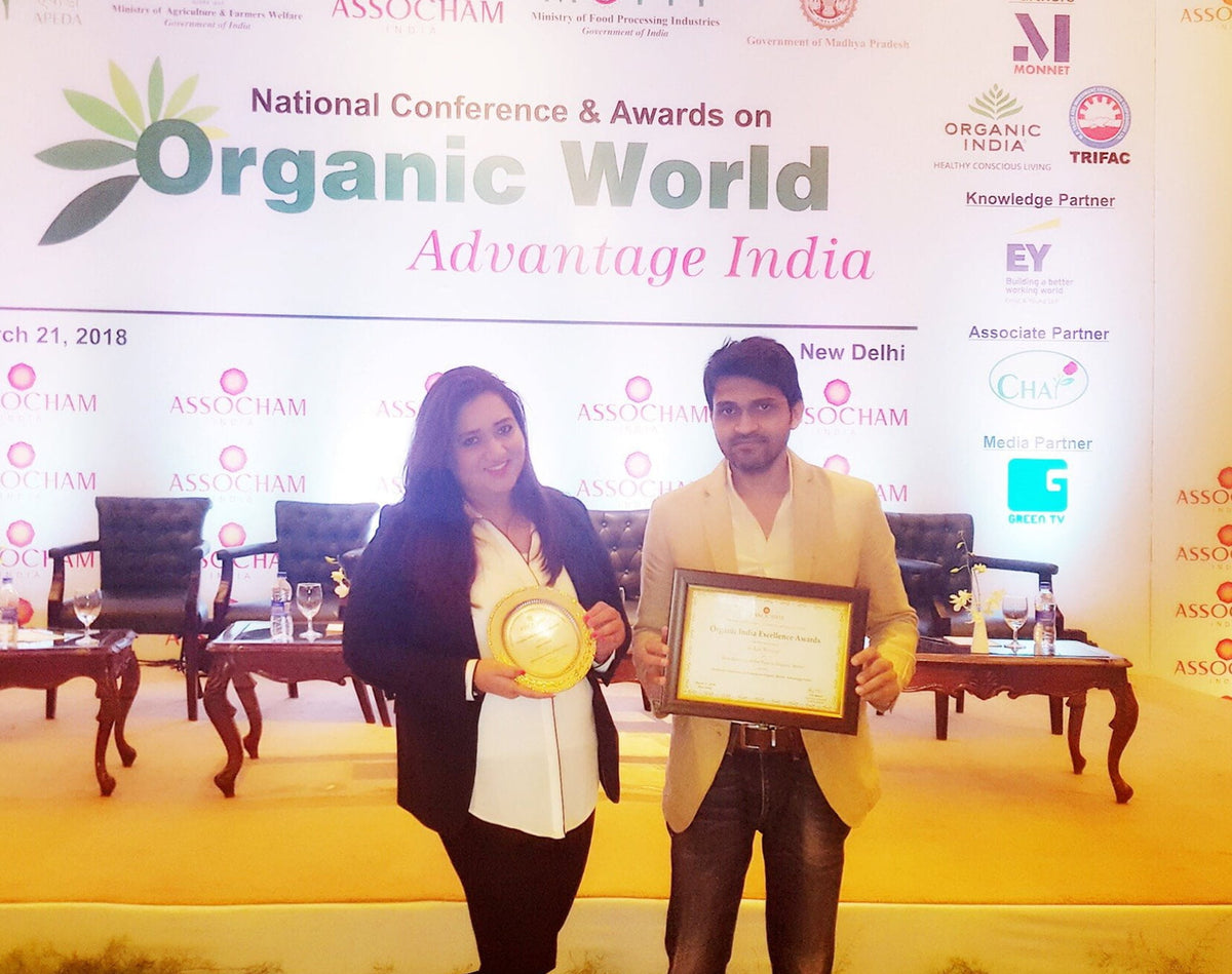 Our Co-founder, Anuja Jadhav, received a national-level award from ASSOCHAM for her outstanding leadership and entrepreneurial excellence in the organic sector.
