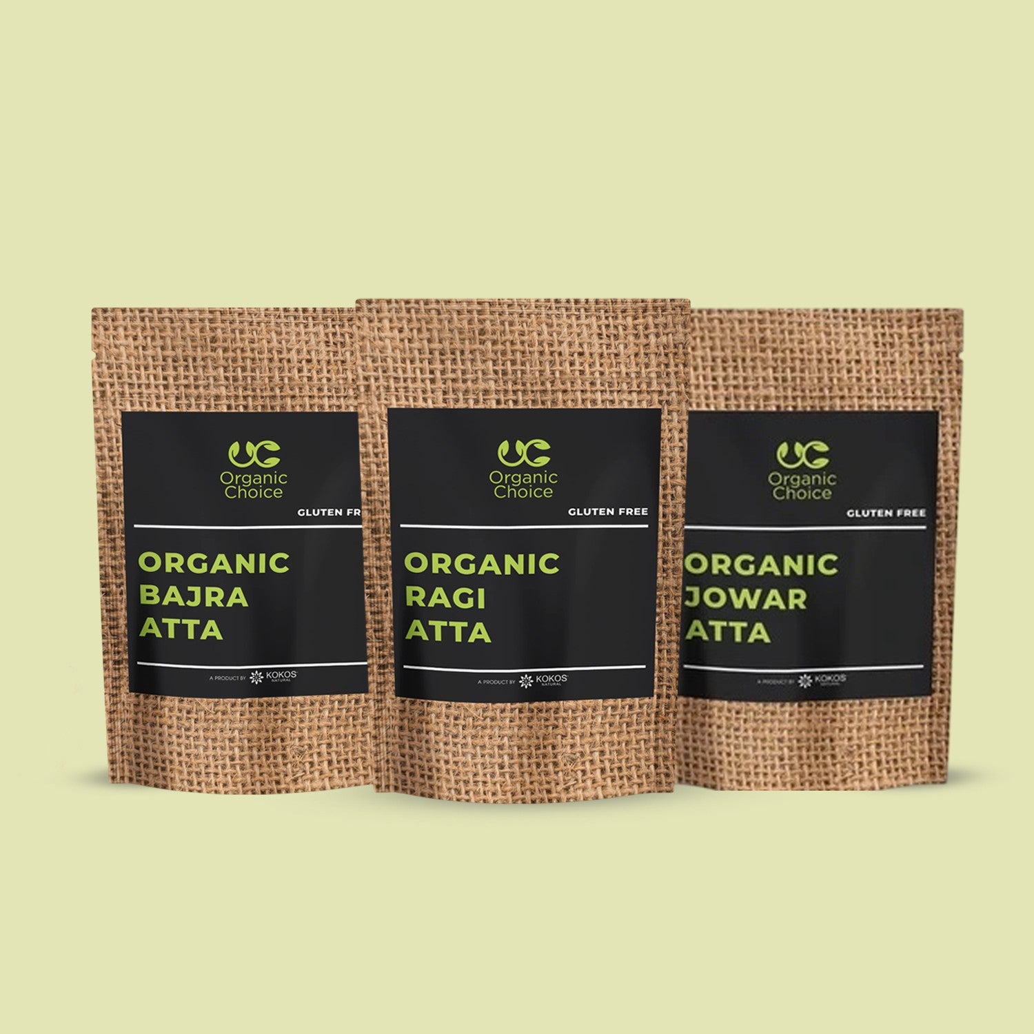 Organic Millet combo - Jowar Atta, Ragi Atta, Bajra Atta