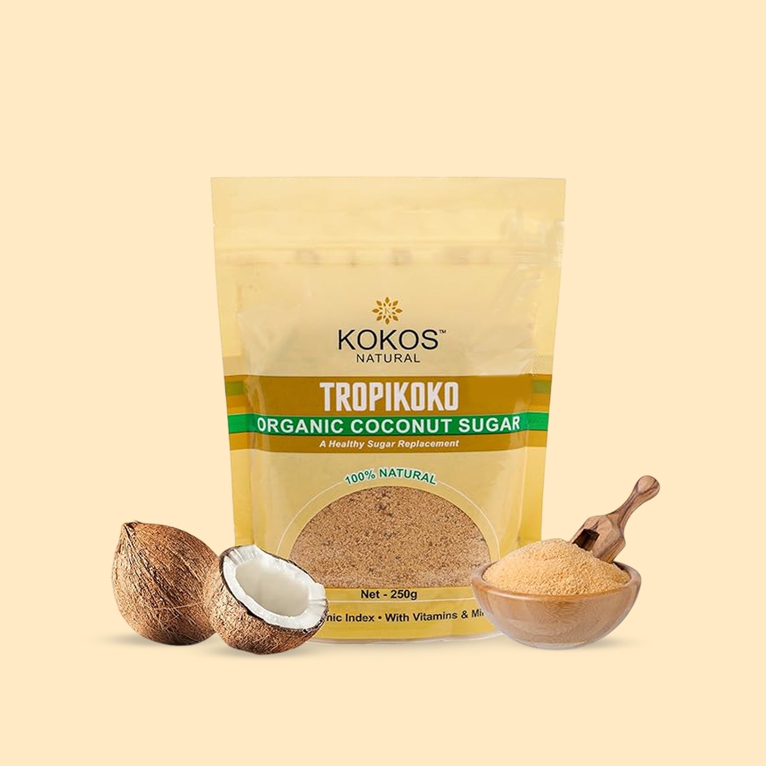 - Organic Coconut Sugar: Kokos Natural Tropikoko Coconut Sugar is a healthy refined sugar replacement. This sugar alternative natural is enriched with 15 essential vitamins and minerals alongside having a low GI value.